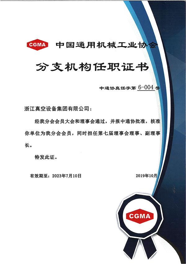 中國(guó)通用機(jī)械工業(yè)協(xié)會(huì)會(huì)員證書